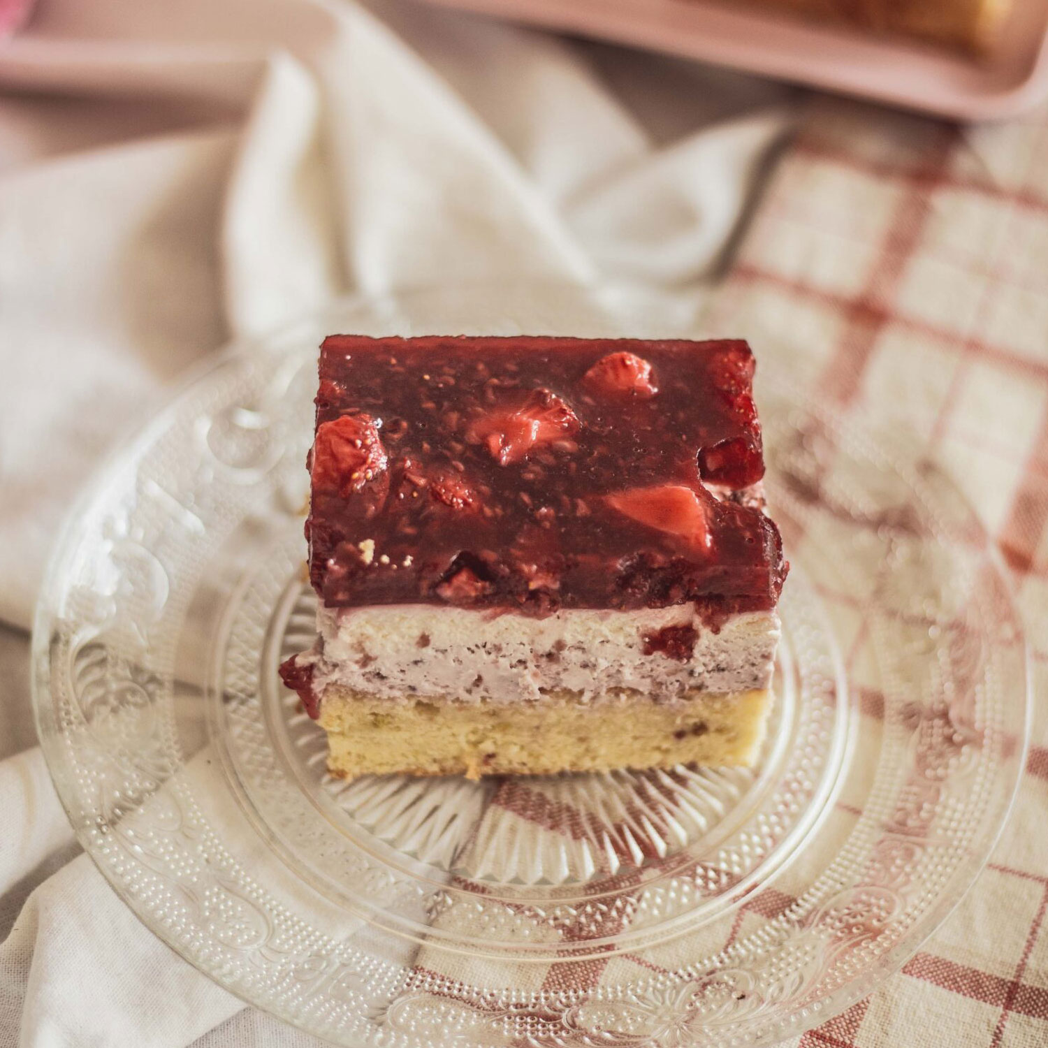Osvěžující a barevný zákusek je ideální volbou pro každou příležitost. Kombinace lehkého nadýchaného těsta, delikátním krémem z mascarpone s vrstvou ovoce.