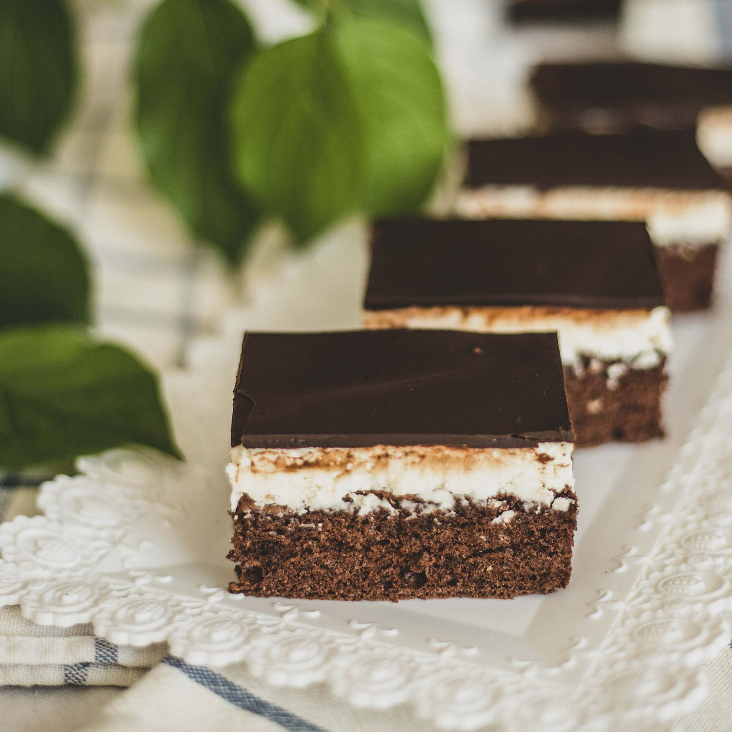 Moučník, který nesmí chybět u nedělní kávy. Nadýchaný kakaový piškot se svěžím tvarohovým krémem a křupavou vrstvou čokolády milují všechny generace. Nejlépe chutná druhý den, protože korpus nasaje vláčnost krému a chutě se propojí.